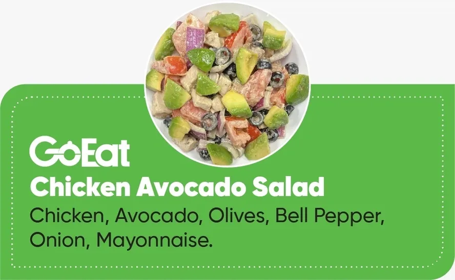 Chicken, Avocado, Olives, Bell Pepper, Onion, Mayonnaise.