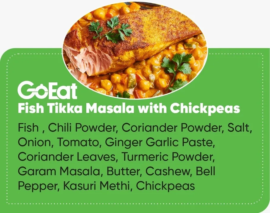 Fish, Chili Powder, Coriander Powder, Salt, Onion, Tomato, Ginger Garlic Paste, Coriander Leaves, Turmeric Powder, Garam Masala, Butter, Cashew, Bell Pepper, Kasuri Methi, Chickpeas